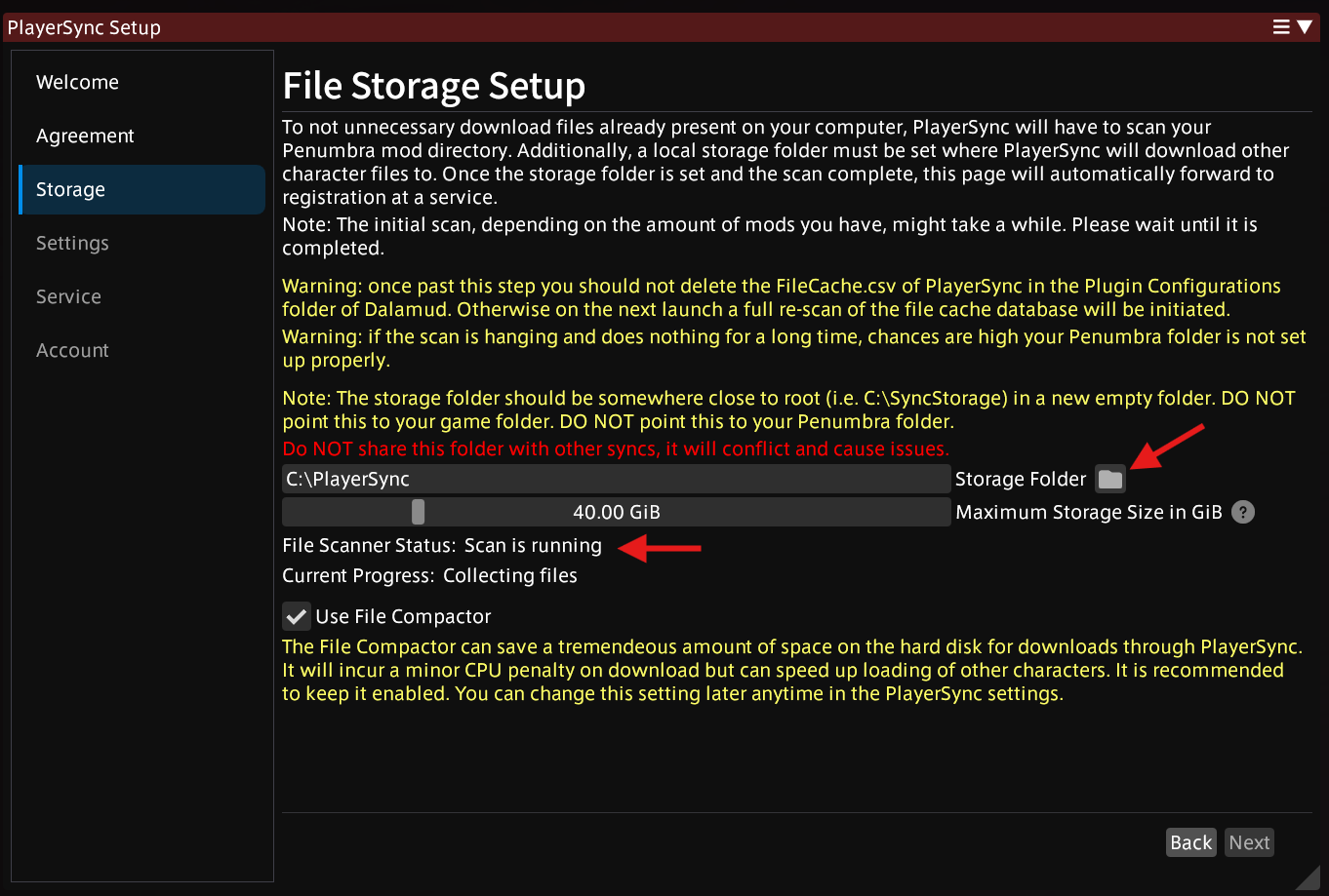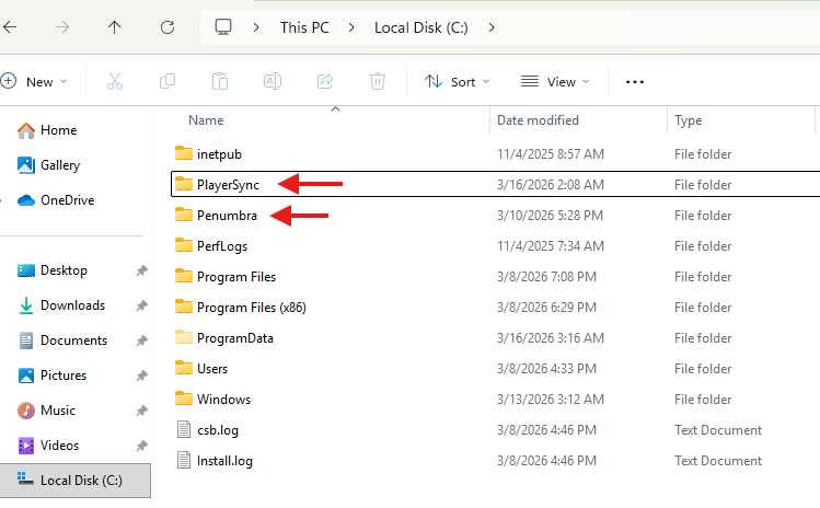 Example: C:\Penumbra and C:\PlayerSync
