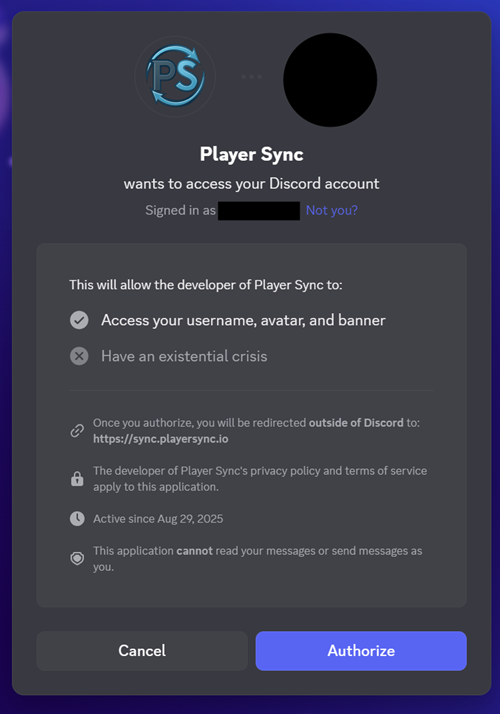 YOU MUST BE SIGNED IN TO THE SAME DISCORD ACCOUNT YOU REGISTERED WITH ON THE PLAYERSYNC DISCORD!