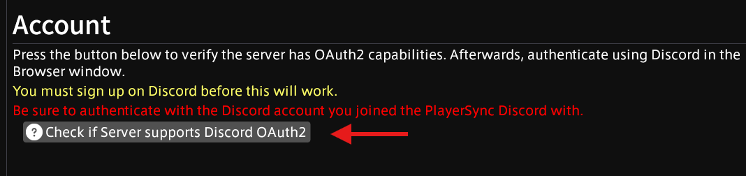 The first step in setting up the Discord auth is to click the button “Check if Server support Discord OAuth2”.
