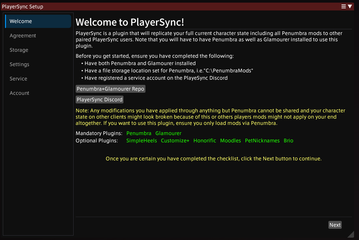Welcome to PlayerSync! This setup guide assumes you already have the XIV Quicklauncher installed on Windows, Linux or Mac. You must use the Quicklauncher and have Dalamud enabled for any plugins to work.