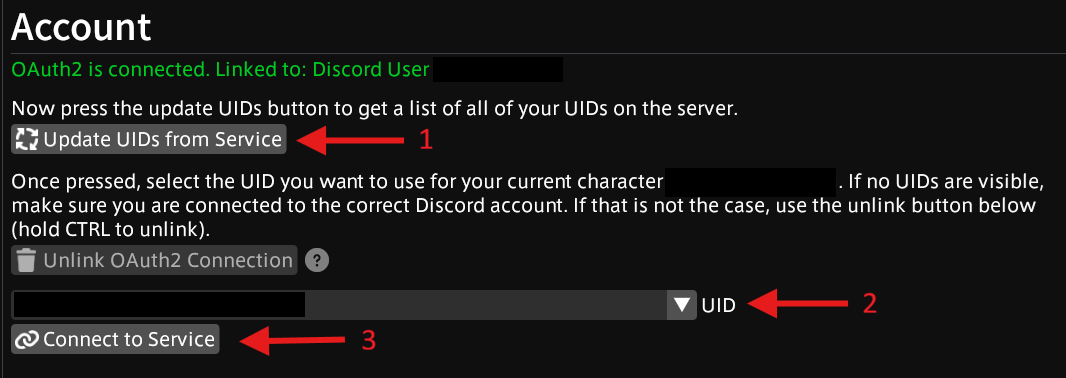 Finally, click on “Update UIDs from Service”, then select your UID from the dropdown, then click “Connect to Service”.