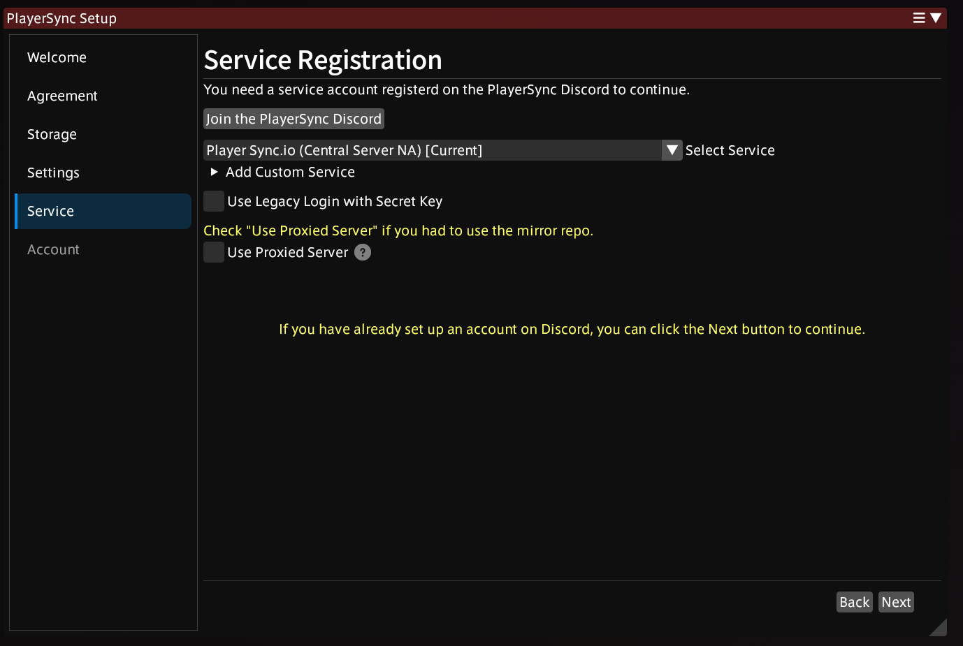 PlayerSync Setup - Account