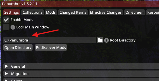 Next, search for “Penumbra” and install it. Once Penumbra is installed, it may open automatically, or you may need to type “/penumbra” in game chat. Once opened, you can choose to do the guided tour or not, but the most important thing is to set your Penumbra folder. Point this to the folder you made earlier, this step is crucial!